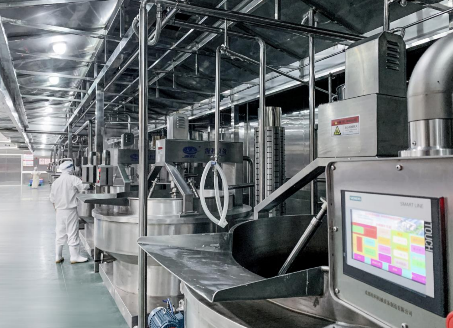 與此同時(shí),四川漫味龍廚生物科技有限公司還向社會(huì)提供餐飲定制、貼牌加工、委托加工服務(wù),期間已聯(lián)合利華、熊貓大鮮、朝天香等知名品牌合作,為其提供定制化的零售端產(chǎn)品研發(fā)、生產(chǎn)服務(wù)為提升生產(chǎn)技術(shù)和產(chǎn)品工藝,公司2019年耗資3億在四川眉山建成數(shù)字智能化生產(chǎn)工廠,正式搭建“小龍坎超級(jí)工廠”。公司秉承“用科技承襲傳統(tǒng),用創(chuàng)新秉承匠心”的宗旨,將傳統(tǒng)川調(diào)行業(yè)由“制造”向“智造”轉(zhuǎn)變。工廠全自動(dòng)化運(yùn)營,整體對接ERP、MES、WMS等軟件系統(tǒng)把高度的數(shù)據(jù)集成技術(shù)運(yùn)用到采購、制作、庫存等生產(chǎn)鏈路中,實(shí)現(xiàn)數(shù)字化管理、智能化生產(chǎn)、科技化工藝,是西南火鍋底料生產(chǎn)行業(yè)采用反應(yīng)釜加機(jī)器人相結(jié)合炒制方法的企業(yè),無需人工感官判斷,智能精準(zhǔn)控制溫度,產(chǎn)品風(fēng)味更加穩(wěn)定。